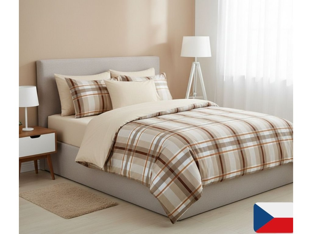 Bavlněné povlečení Káro hnědé