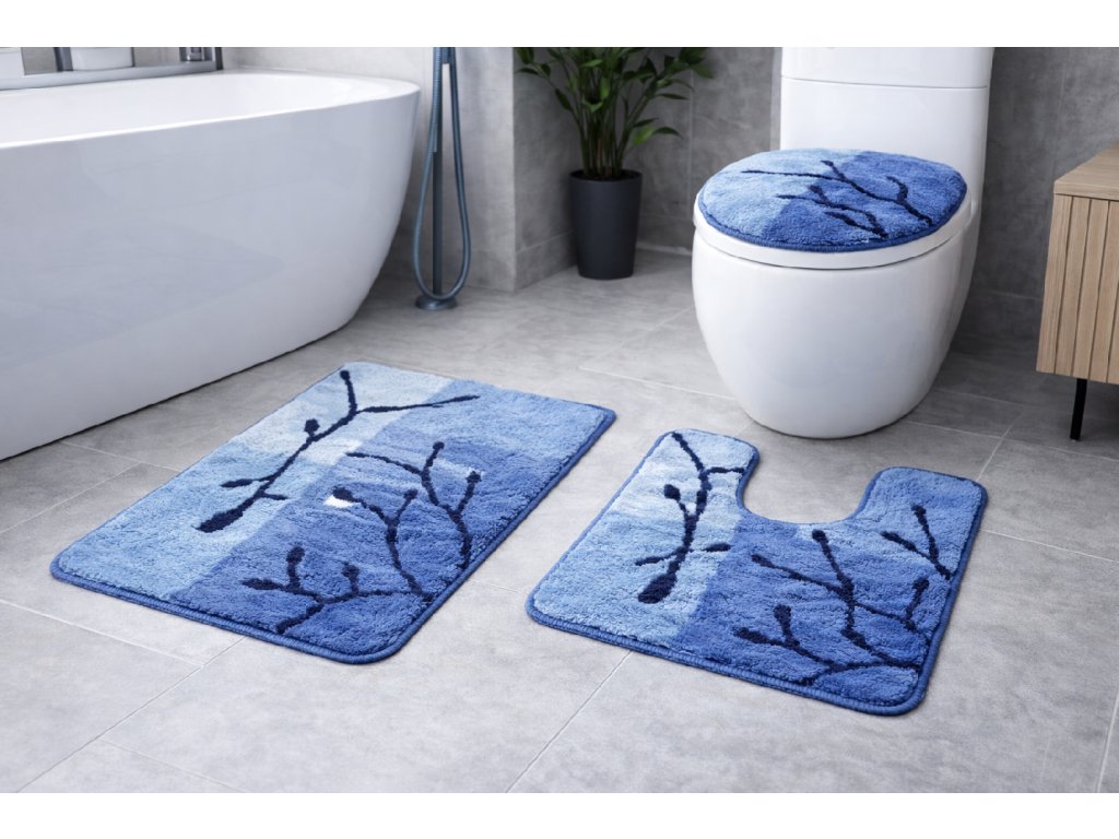 Koupelnové předložky Větvičky modré – vyrobené z měkkého akrylového vlákna.