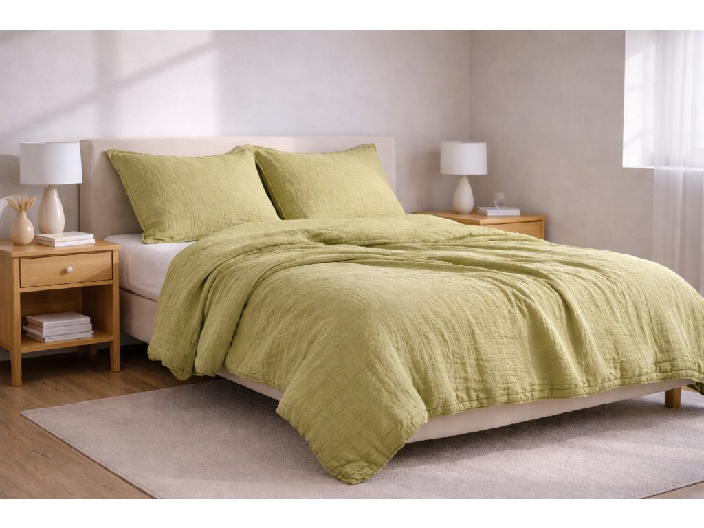 Mušelínové povlečení světle olivová 140x200 + 70x90 cm