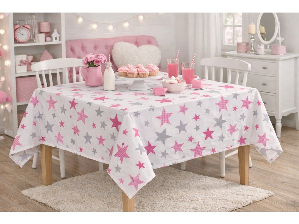 Stylový ubrus s růžovo-šedými hvězdičkami, který rozzáří každý stůl.